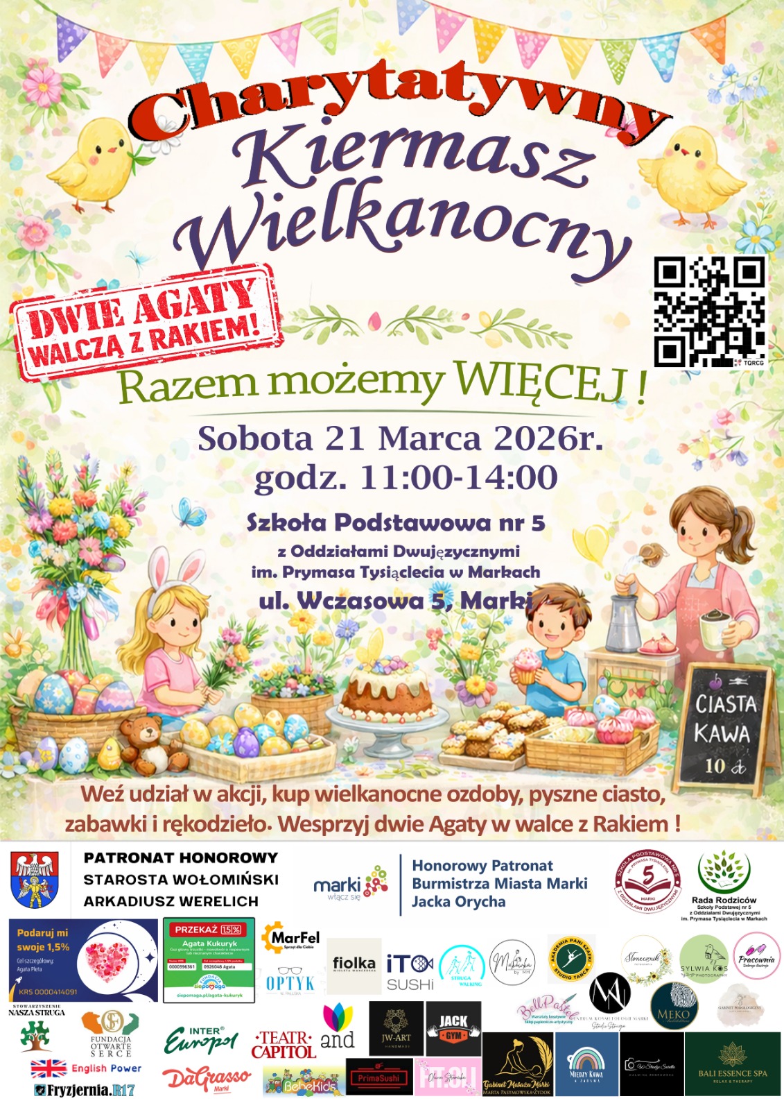 W dniu 21 marca 2026 roku w godzinach 11:00–14:00 Rada Rodziców przy Szkole Podstawowej nr 5 w Markach organizuje Charytatywny Kiermasz Wielkanocny