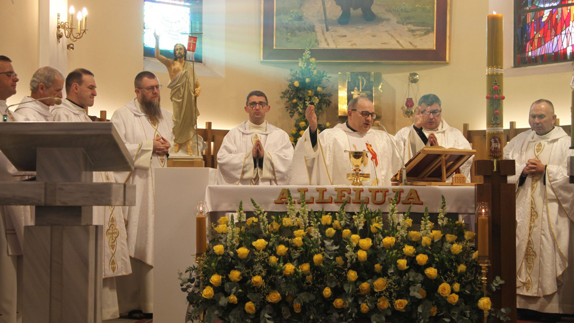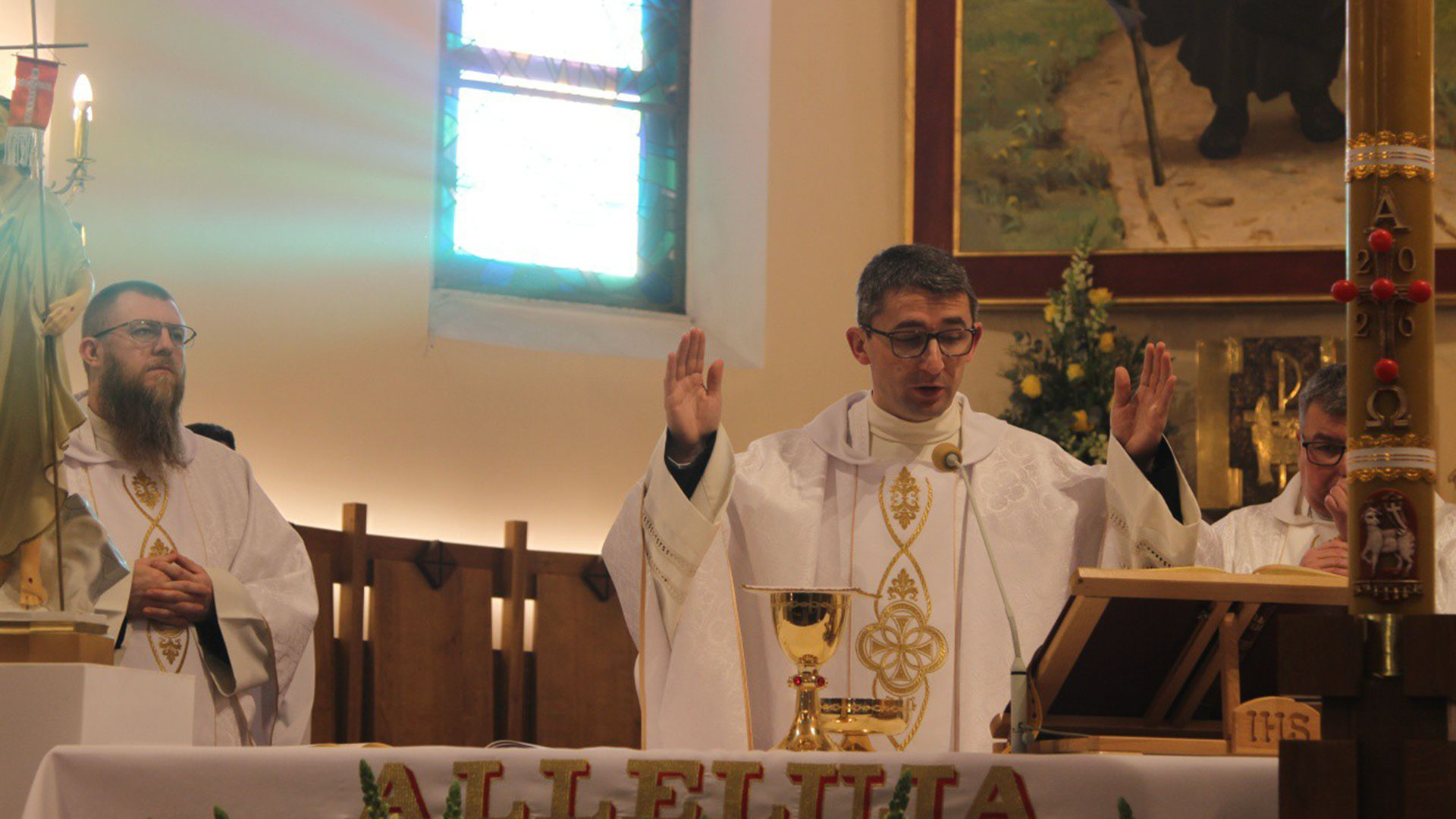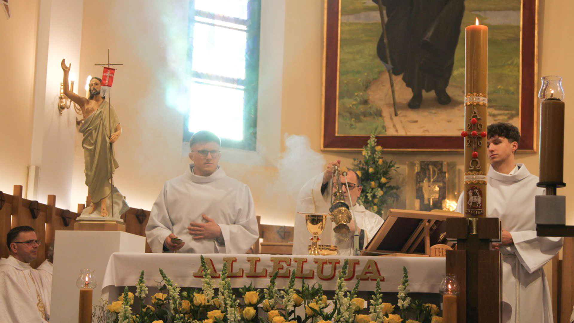 Na samym poczatku Mszzy Świętej odbyła się procesja rezurekcyjna, podczas której głosiliśmy radość zmartwychwstania. Homilię tego dnia wygłosił ks. Krzysztof Poświata, wikariusz generalny Zgromadzenia Michalitów.